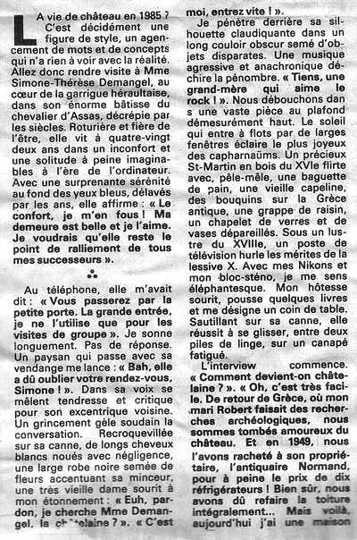 un article paru dans le Midi Libre en 1985