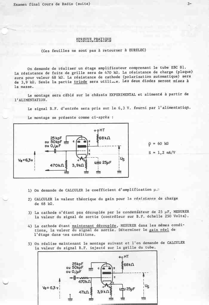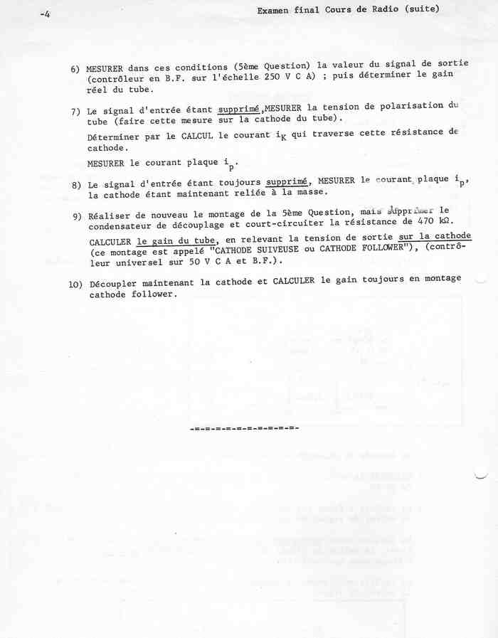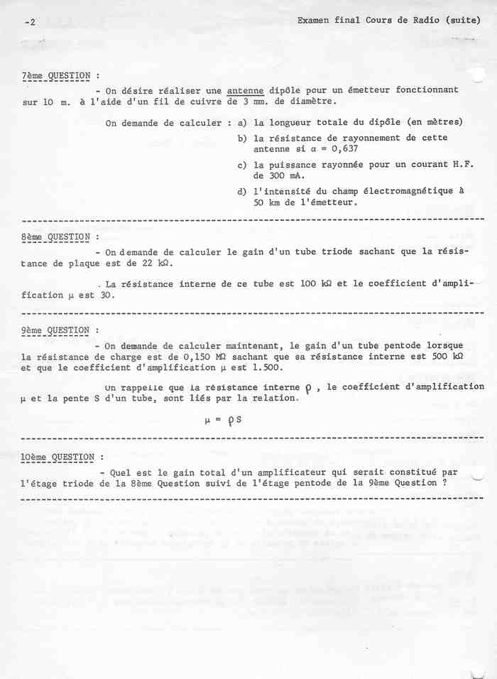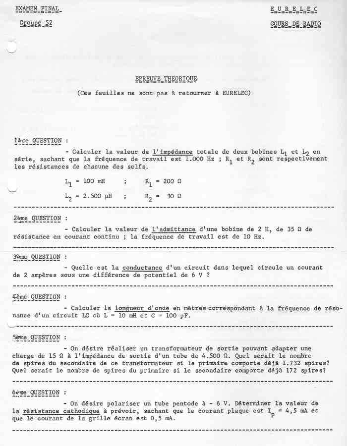 des examens étaient proposés à intervalle régulier, voici l'examen final du cours de radio AM-FM :