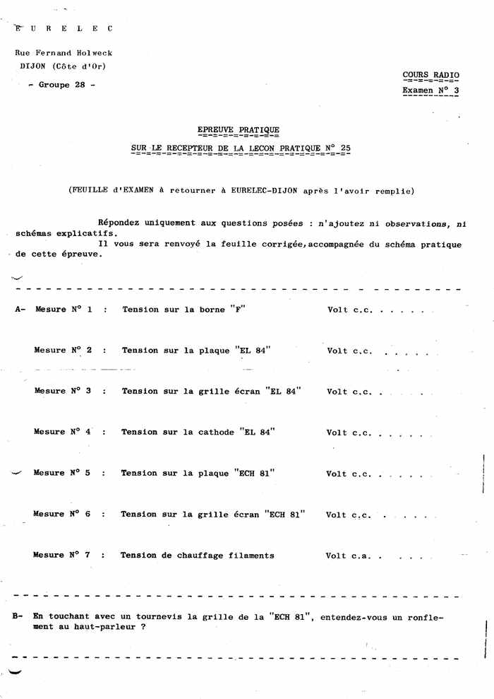 cours de transistors mesures électroniques TV noir et blanc couleur