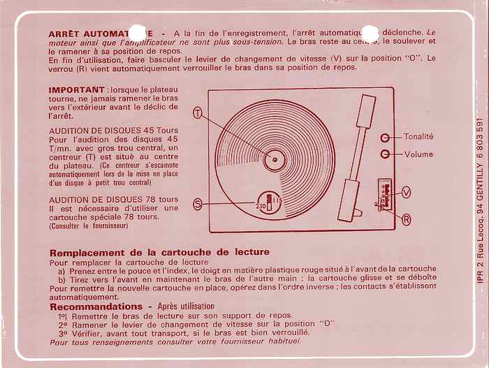 de tourne-disque pour 90 F (en 1969)