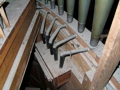 Pédale : Soubasse 16 Basse 8 Flûte 16 Flûte 8 Flûte 4 Bombarde 16 Trompette