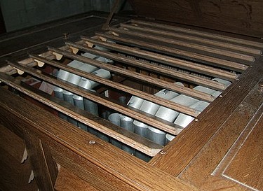 Dessus : Bourdon 16 Voix céleste 8 Violoncelle 8 Bourdon 8 Flûte octaviante