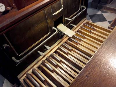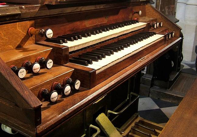 Récit expressif : Dulciane 8 Bourdon 8 Flûte 4 Voix céleste 8 Trompette 8 Hautbois 8