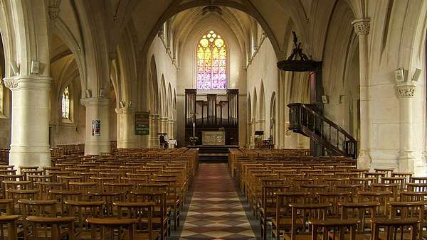 fond de l'église à chevet plat, tandis que l'autel majeur néo-gothique du