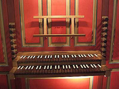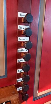 Premier clavier : Montre 8 * Flûte à cheminée 8 Prestant 4 Doublette 2 Plein-Jeu