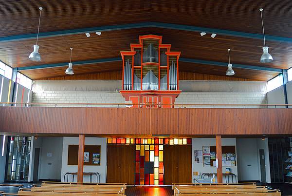 L'église Saint-André de Caen, comme le quartier du Calvaire Saint-Pierre, date des années 60. Elle fut construite par les Chantiers du Diocèse pour répondre aux besoins de l'accroissement urbain de l'époque. En 1985 le père François Cassigneul entreprit d'y mettre un orgue et s'adressa à Jean- François Dupont qu'il connaissait bien. Un beau projet d'instrument de dix-neuf jeux avec positif de dos et jeu de chamade lui sembla irréalisable sans la moindre subvention. Il fallait voir plus modeste : avec les conseils de Michel Alabau, ce sera un orgue de quinze jeux au buffet peint en différents tons de rouge, le tout financé en trois ans. Cet orgue fut inauguré par Francis Chapelet le 4 octobre 1987.
