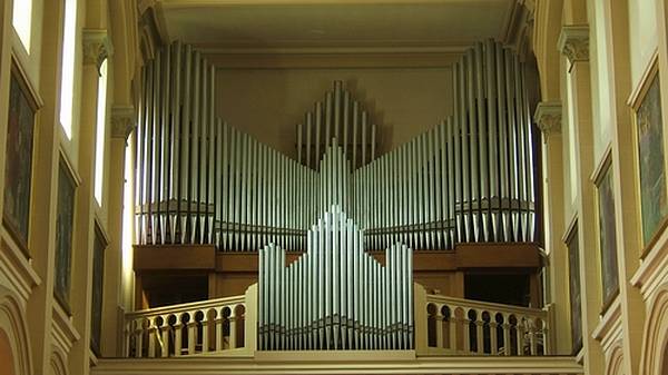 Qui ne connaît Deauville, au moins de réputation ? Nous vous invitons à visiter avec nous l'église Saint-Augustin de Deauville et son orgue Haepfer-Erman. L'église entourée d'un espace vert toujours fleuri date de 1864. Deux séries de peintures murales (de marouflages) consacrées à saint Augustin et à saint Laurent occupent les murs entre les piliers et les fenêtres hautes. Dès la mise en service de l'église, il y eut un Cavaillé-Coll très modeste, de sept jeux. Malgré l'agrandissement qui le porta à dix-sept au début du XXème siècle, il était clair que cet orgue ne pourrait jamais donner pleine satisfaction dans les conditions où il était installé, en partie dans le clocher... Grâce à la détermination d'un nouveau curé, l'abbé Germain, il fut remplacé en 1955 par un instrument sorti de la Manufacture lorraine Haerpfer-Erman. FC.