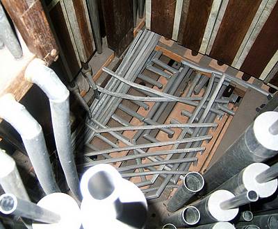 tuyauterie du GO et cornets postés derrière la tourelle centrale