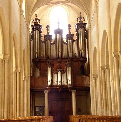 Le bel instrument va traverser sans dommages considérables la tourmente révolutionnaire. Il y a quand même nombre de travaux à effectuer lorsque le culte est rétabli en 1803. Par chance (!) le manque de crédits va contraindre à limiter les réparations que nécessiterait l’état de l’orgue. Contrairement aux apparences, c’est ce qui va le sauver ! En dépit de quelques interventions effectuées par différents facteurs, notamment un relevage par Koenig en 1886, l’orgue se dégrade petit à petit. La destruction des vitraux de l’église en 1944 n’a rien arrangé : en 1949, l’orgue est muet. Jacquot-Lavergne fait des offres de service qui, heureusement, n’ont pas de suite. Les pouvoirs publics ne se désintéressent pas pour autant de l’état général de l’orgue Parisot. En 1955, la partie instrumentale est classée Monument historique. En 1970, c’est le buffet qui l’est à son tour. La restauration est confiée aux facteurs Boisseau-Cattiaux en 1992-1993 : ils restaurent entièrement l’orgue à l’identique du travail des Parisot. Il est alors inauguré par Gustav Leonhardt. FC.
