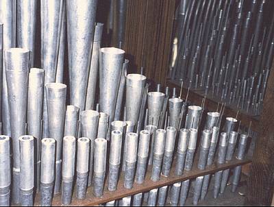 Grand-Orgue : Bourdon 16 Montre 8 Tibia clausa 8 Flûte octaviante 4 * Quinte 2 2/3 * Flautino 2 * Dulciane (C2)