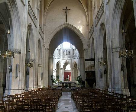 Les églises de Falaise sont toutes belles. Toutes ont eu à souffrir de la guerre lors des bombardements et des combats de l'été 1944. Toutes ont été patiemment restaurées, même s'il reste encore à faire. Non loin du château de Guillaume-le-Conquérant se dresse l'église de la Trinité. Elle est classée Monument historique mais elle n'a pas pour autant retrouvé son clocher de jadis. Il ne reste que la base de la tour pour abriter la douzaine de cloches d'un petit carillon. L'intérieur est magnifique, avec le transept du XIIIème siècle, la nef et les collatéraux du XVème, le chœur et le déambulatoire du XVIème, ce dernier surélevé comme pour un trône. Quelques jolis vitraux modernes pour éclairer l'ensemble de l'édifice. L'église avait deux orgues qui furent détruits en 1944. Le grand orgue à la tribune dont nous ne savons rien aujourd'hui et l'orgue de chœur Cavaillé-Coll. Un seul instrument leur a succédé, qui se trouve dans le bras du transept sud. C'est un Jacquot-Lavergne, comme il y en a eu tant d'autres, construits quasiment en série à l'époque des reconstructions. Celui-ci est meilleur que d'autres de la même firme.FC.