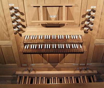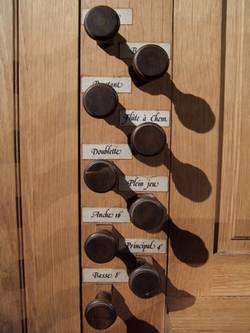 Pédale : Rankett 16 (bois) Basse 8 (emprunt GO) Prestant 4 (emprunt GO)