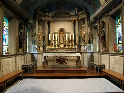 Située sur la hauteur qui domine de près de 100 mètres l’estuaire de la Seine, cette chapelle de pèlerinage construite en 1600-1615 a remplacé un édifice dédié à la Vierge Marie, datant peut-être de 1023 et détruit en 1538 par un effondrement de la colline. Pendant la Révolution Française, la chapelle fut pillée et mise en vente comme bien national. C’est ainsi qu’elle devint propriété de la Ville de Honfleur, alors qu’elle se trouve sur le territoire de la commune limitrophe d’Equemauville. C’est après le Concordat qu’on y amena une très belle statue en bois doré de la Vierge Marie tenant son Enfant, œuvre d’un sculpteur anonyme qu’on peut dater de la fin du XVIIème ou du début du XVIIIème siècle. Peut-être cette statue avait-elle été cachée dans le clocher de Sainte-Catherine pendant la période révolutionnaire. D’autres statues de saints, toutes en bois mais d’une facture moins heureuse (XIXème siècle) et nombre d’ex-voto, maquettes de navires et tableaux, occupent les murs et les voûtes de l’édifice. A côté de la chapelle se trouve un carillon de 24 cloches dont les sonneries marquent tous les quarts d’heure. Un orgue fut mis en place en 1913 dans un espace aménagé sur le côté gauche du chœur. Il fut retiré en 1990, et le facteur d’orgues Jean-François Dupont construisit un petit orgue à la tribune. FC.