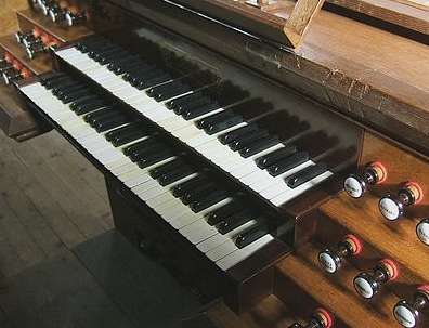 Récit : Bourdon 8 (F 2) Gemshorn 4 (F 2) Nasard 2 2/3 (F 2) Flûte 2 (F 2) Tierce 1 3/5 (F 2) Larigot 1 1/3 (F 2) Septième11/7 (F 2) Sifflet 1 (F 2) Régale 8