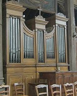 Grand-orgue : Bourdon 8 Prestant 4 Doublette 2 Plein-Jeu 3 rgs Cornet 5 rgs Trompette Cromorne