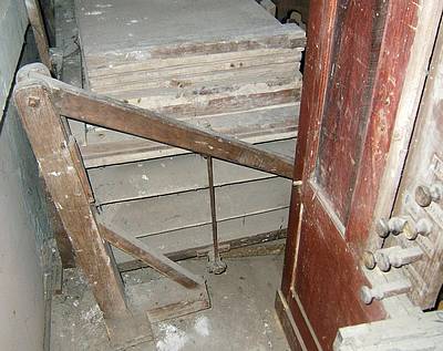 le clavier, qui aurait longtemps servi de marche, pour descendre sur la tribune...