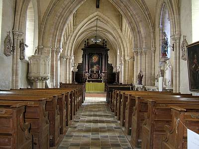 C'est une petite commune nichée dans la verdure près de Bayeux. Elle a son château du XVIIIe siècle inscrit à l'inventaire des Monuments Historiques, et tout à côté son église du XIIIe au clocher en bâtière, caractéristique du Bessin. Elle a été très remaniée au XIXe siècle. Ce sont les châtelains qui ont offert en 1880 le petit orgue Cavaillé-Coll et la tribune pour l'y installer. L'inscription habituelle figure audessus du clavier : A. Cavaillé-Coll Paris. Un seul clavier expressif de 56 notes coupé en basses et dessus et un pédalier de 20 notes. L'église de Barbeville n'est pratiquement jamais utilisée pour le culte. Lors de notre visite, nous pensions découvrir un orgue injouable. Nous avons eu l'agréable surprise de le trouver presque juste. Et depuis cette visite, nous avons appris que l'instrument a été relevé par le Facteur nantais Denis Lacorre. FC