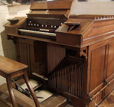 Dessus : Bourdon 16 Violoncelle 8 Voix céleste 8 Flûte harmonique 8 Flûte octaviante 4 Clariton