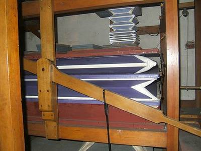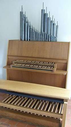 Positif expressif : Dulciane 16 Bourdon 8 Salicional 8 Montre 8 Principal 4 Quarte 2 Piccolo 1 Nasard 2 2/3 Tierce 1 3/5 Fourniture 6 rgs Cymbale 3 rgs Cornet 5 rgs ** Clarinette 16 Cromorne 8 Clairon 4