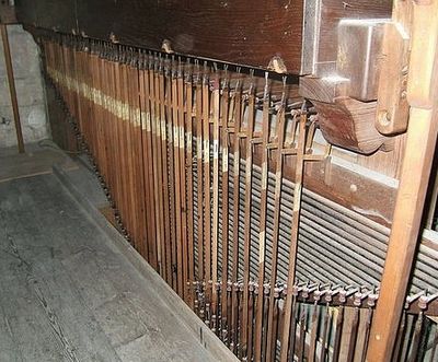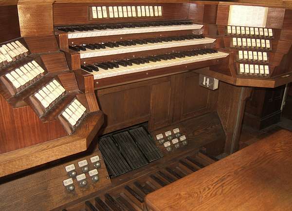 Pédale : Contre-basse 16 Soubasse 16 Violoncelle 8 Basse 8 Bourdon 8 (emprunts GO)
