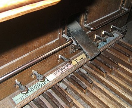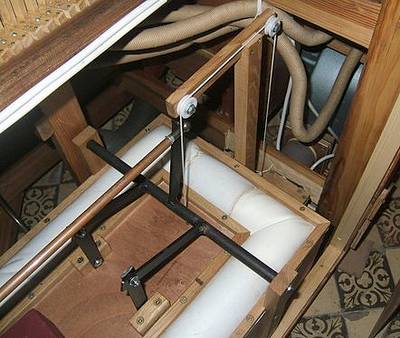Tirasse G.O - Tirasse Récit - Combinaisons récit - Pédale expressive Barker Accouplement GO /Récit - GO/Récit octave grave - Pédale tutti