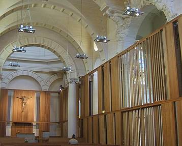 Ce monastère a été fondé en 1838. En 1888, Thérèse Martin y entrait, deux de ses sœurs l'y avaient précédée. La petite sœur Thérèse de l'Enfant Jésus décède le 30 septembre 1897 à l'âge de 24 ans, d'une longue et douloureuse tuberculose. Elle est totalement inconnue hormis d'un petit cercle de famille et d'amis. C'est la publication de son manuscrit autobiographique rédigé par obéissance et sans autre souci que d'en faire une action de grâce, qui va très rapidement la faire découvrir : « L'histoire d'une âme ». Elle sera canonisée en 1925. Depuis les pèlerins venus de France et du monde entier se succèdent à Lisieux. La communauté du Carmel a entrepris depuis deux ans de très importants aménagements pour mieux permettre à la foule des visiteurs de comprendre la vie monastique et d'accéder aux souvenirs que l'on conserve de Sainte Thérèse. Nous avons visité la chapelle telle qu'elle se présente aujourd'hui : à la tribune, l'orgue Mutin-Cavaillé-Coll de 1930 attend le dépoussiérage rendu nécessaire par les travaux. Mais le peu que nous avons pu découvrir de son état actuel nous a permis d'admirer la qualité de la transmission à partir du clavier et nous laisse espérer que bientôt tout sera en ordre. FC