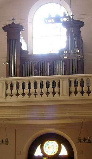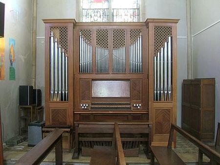 Grand-Orgue : Bourdon 16 Montre 8 Salicional 8 Flûte harmonique 8 Bourdon 8 Prestant 4 Flûte douce 4