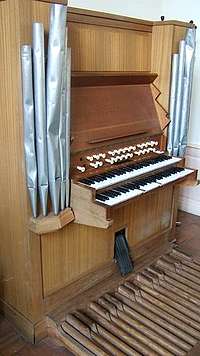 Positif : Quintaton 16 Nachtorn 8 Principal 8 Unda maris 8 Flûte douce 8 Dulciane 4 Quintaton 8 Doublette 2 Sifflet 1 Clarinette 8 Trompette 8 Clairon 4 Plein-Jeu harmon.