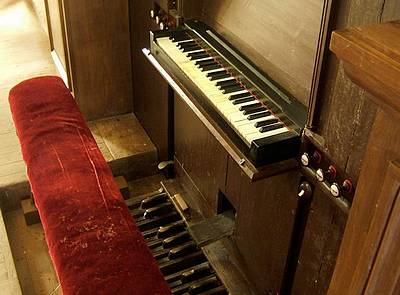 Pédale (13 notes) : en tirasse Un seul clavier avec jeux coupés. Expression générale. Pédalier de 13 notes.