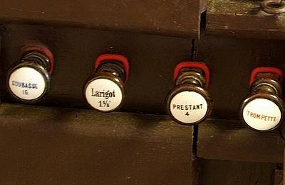 Basses : Bourdon 8 Gambe 8 Prestant 4 Trompette 8
