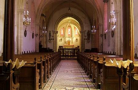 Au sud-ouest de Bayeux, non loin de la forêt de Cerisy, la commune de Le Molay-Littry rassemble plusieurs bourgs : Le Molay, Littry et Le Molay-Littry. Ce fut longtemps un pays minier, avec une mine de charbon exploitée aux XVIIIème-XIXème siècles. Pour les mineurs et leurs familles, on a construit une chapelle dédiée à Sainte Barbe, la patronne des mineurs et des pompiers. On peut également visiter l'intéressant Musée de la Mine. L'église de Molay est de style néogothique. Elle possède un orgue de modestes dimensions dont le buffet s'encastre dans l'arcade qui fait communiquer le premier étage du clocher avec la nef de l'église. Cet orgue a été construit par Cavaillé-Coll en 1866. Vincent d'Indy l'a joué lorsqu'il séjournait en vacances dans la région. Depuis, l'existence de l'orgue a été plusieurs fois menacée lorsque des paroissiens bien intentionnés mais mal informés suggéraient son remplacement par un instrument électronique. Par bonheur, un paroissien dont l'épouse était une organiste talentueuse, s'est dépensé sans répit pour la restauration rendue nécessaire par l'état de l'orgue et pour son classement comme monument historique en 1991. Subsiste seulement l'inconvénient, pour l'organiste, d'être un peu isolé de l'ensemble de l'église, enfermé comme il est derrière le buffet de l'orgue à l'intérieur du clocher, avec l'aide d'un écran de télévision. FC