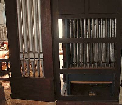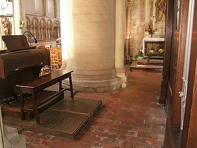 la console et l'orgue, dans le bas-côté droit