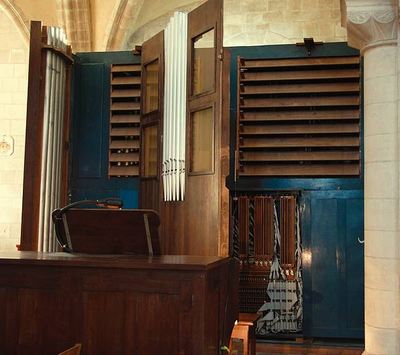 Récit : Cor de Nuit 8 Gambe 8 Voix céleste 8 Salicet 4 Flûte 4 Flageolet 2 Nasard 2 2/3 Tierce 1 3/5 Larigot 1 1/3 Cymbale III rgs Trompette 8 Clairon 4 Anches Récit