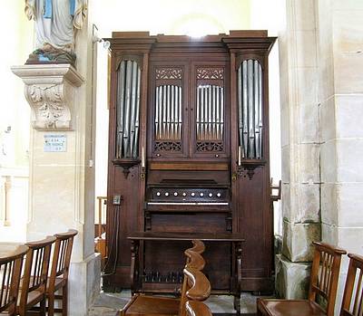 La petite église dédiée à saint Samson, commune de Saint-Samson, n'a rien que de très ordinaire. Elle semble du XVIIIème siècle avec, en façade, un clocher à l'impériale. A l'intérieur, un Christ polychrome, lutrin, confessionnal, tous du XVIIIème siècle. Et un orgue. On ne sait rien sur l'origine de cet orgue : le constructeur et le donateur demeurent inconnus. On peut penser qu'il s'agit d'un orgue de salon datant du XIXème siècle, c'est tout. Il n'est pas en bon état, mais il sonne quand même, pas très juste. Une soufflerie électrique lui a été adjointe. La façade de «chanoines» a reçu des coups malencontreux. Il ne faudrait peut-être pas un budget considérable pour un minimum de restauration et d'entretien. FC