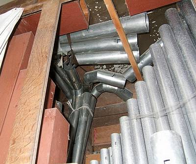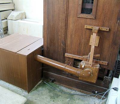le moteur, et ses tubes de PVC peints en marron...; détail de la façade