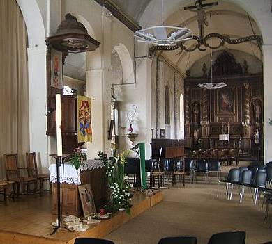 l'autel à gauche, au centre de la nef, et l'orgue sur le coté
