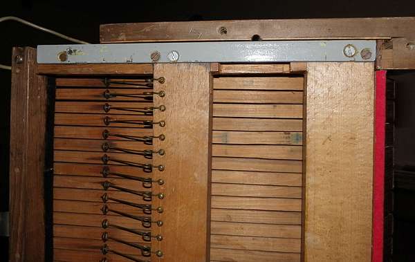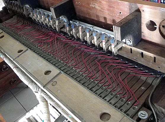 un clavier remonté, avec le faisceau de fils qui part vers les boites