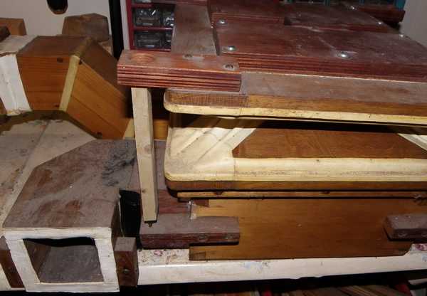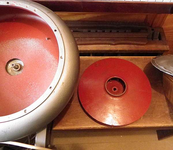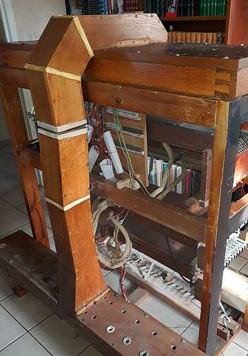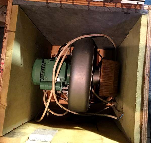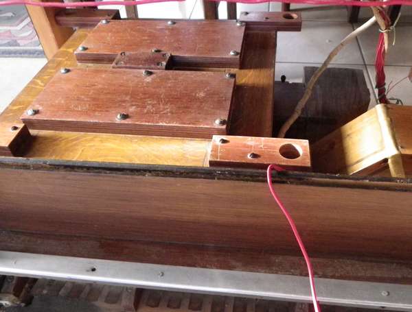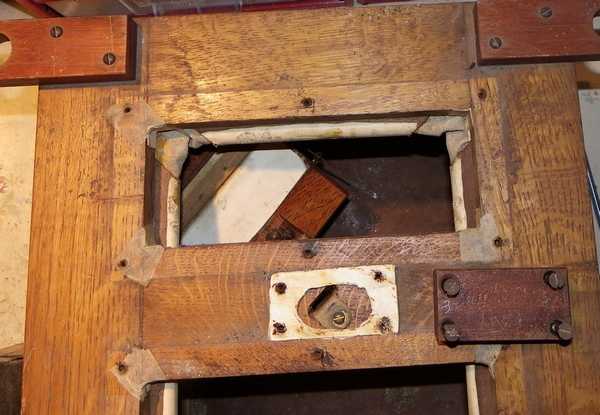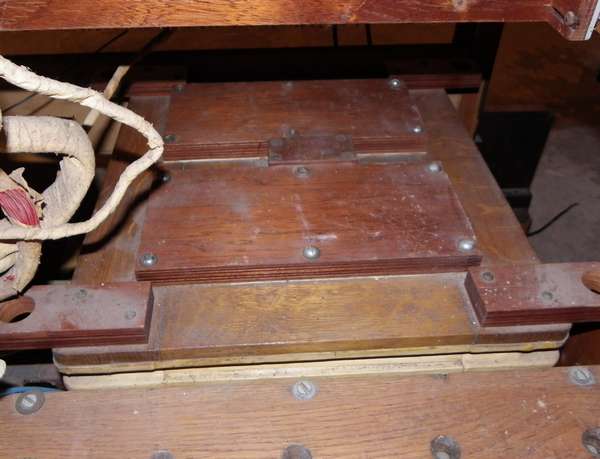 et à droite, le portevent en chêne qui conduit l'air aux sommiers