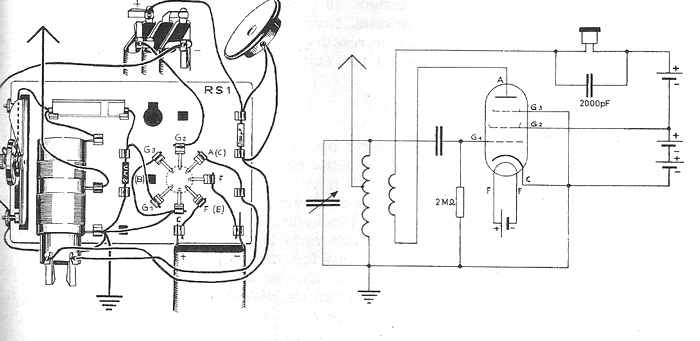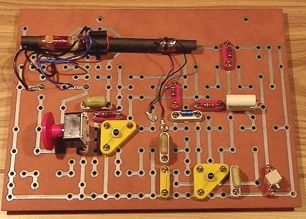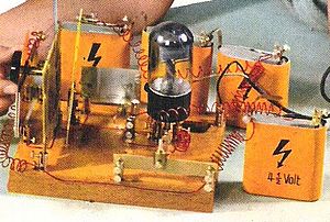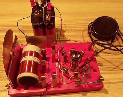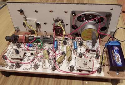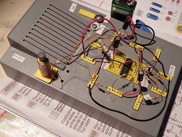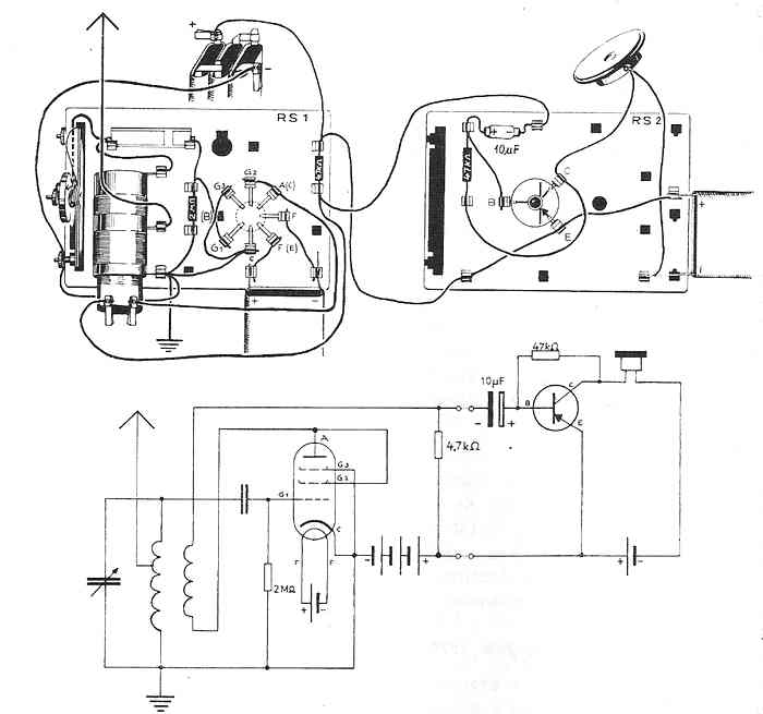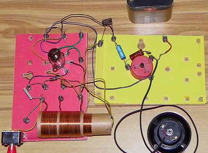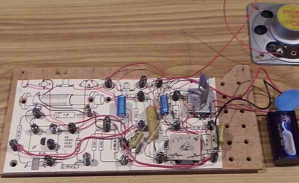 récepteur avec lampe et transistor, montage provisoire avec du matériel