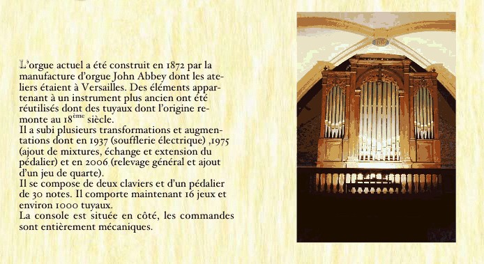 (depuis, l'orgue a fait l'objet d'un nouveau relevage en 2006, avec ajout d'une quarte au GO)