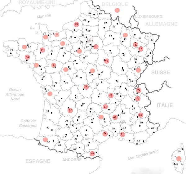 Montagny, 49 Saumur-St-Lambert-les-levées, 74 Boege et 44 Le Clion sur
