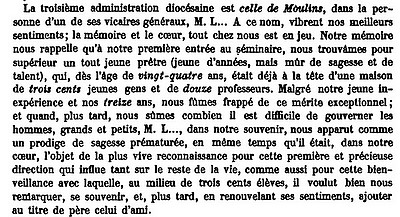 [de Moulins], en la personne de son ancien supérieur au petit séminaire,
