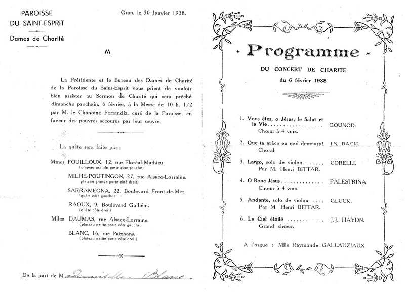 à la synagogue, à Mascara. En 1950, Paul Aubry-Angellier, organiste de la