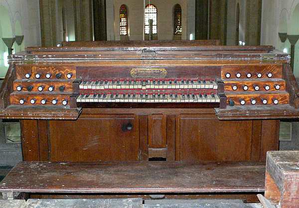 16, Bourdon 16 ; Montre 8, Bourdon 8, Violoncelle 8, Prestant 4, Flûte octaviante
